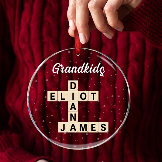 Grandkids Crossword Puzzle Art Personalized Ornament, Christmas Gift For Grandma, Gift For Mom