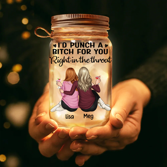 Right In The Throat Women Best Friends - Personalized Mason Jar Light