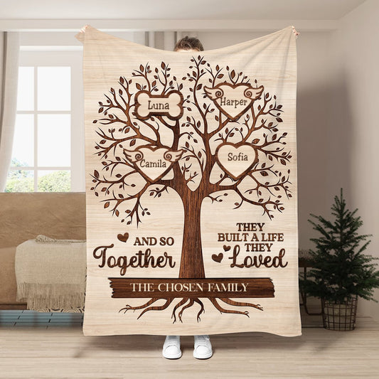 Family - Christmas Family Tree And So Together They Built A Life They Loved - Personalized Blanket (BU)