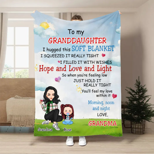 Family - Grandma & Grandkid Hope And Love And Light - Personalized Blanket (QH)