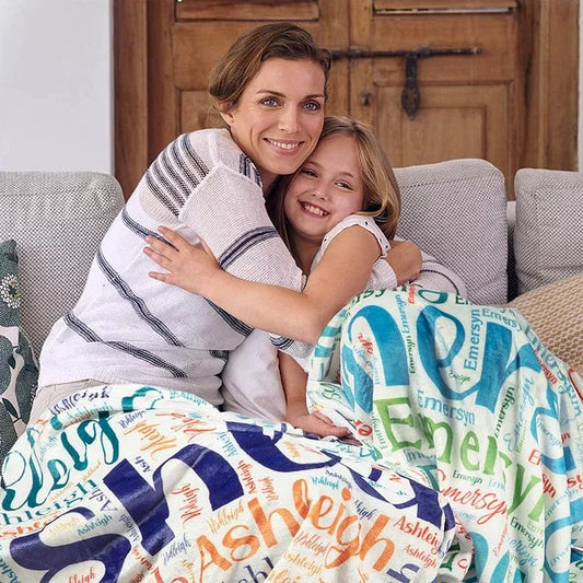 Personalised Family Name Blanket Gift for Kids Babys Women Men Word Cloud Art Design Soft Flannel