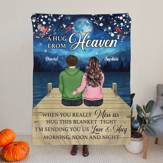 A Hug From Heaven When You Really Miss Me Memorial Back Sitting - Personalized Fleece Blanket, Sherpa Blanket