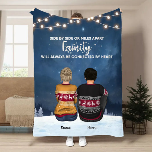 Family - Side By Side Or Miles Apart ... Will Always Be Connected By Heart - Personalized Blanket