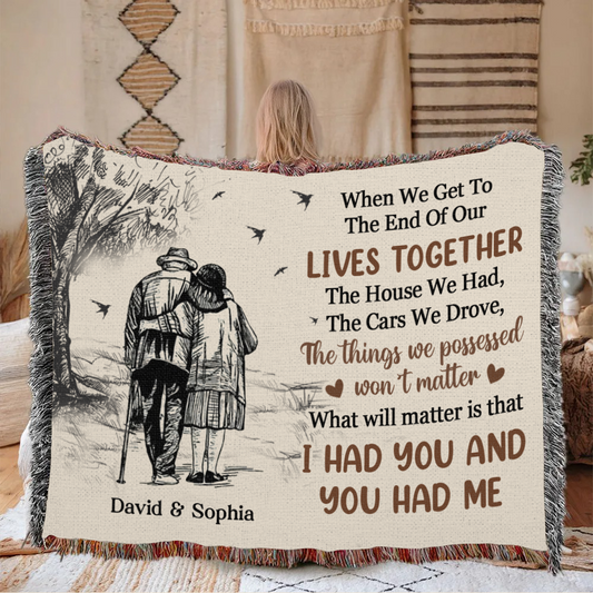 I Had You You Had Me Old Couple Walking Together Personalized Tapestry Woven Blanket