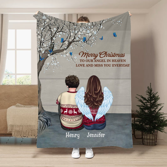 Family - Merry Christmas To Our Angel In Heaven Love And Miss You Everyday - Personalized Blanket (VT)