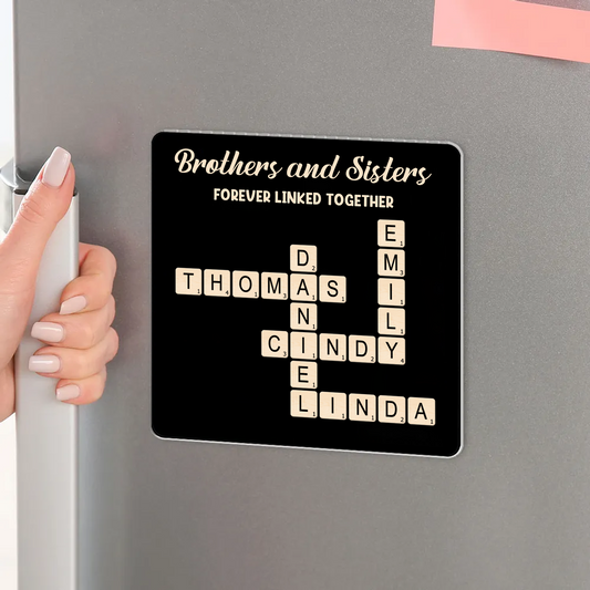 Brothers & Sisters Forever Linked Together Crossword Puzzle Art Personalized Acrylic Fridge Magnet, Gift For Brothers, Sisters, Siblings, Family