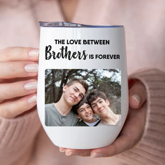 Brothers - The Love Between Brothers Is Forever - Personalized Wine Tumbler