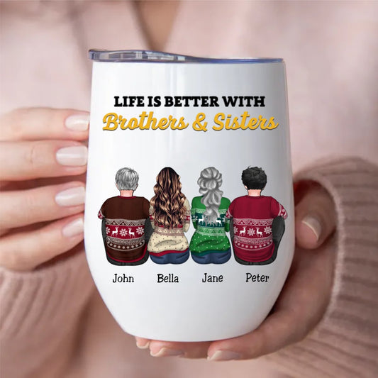 Family - Life Is Better With Brothers & Sisters - Personalized Wine Tumbler