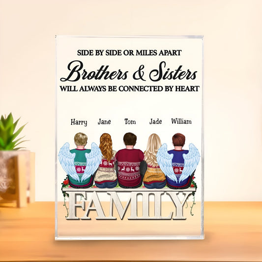 Brothers & Sisters - Side By Side Or Miles Apart Brothers & Sisters Will Always Be Connected By Heart - Personalized Acrylic Plaque