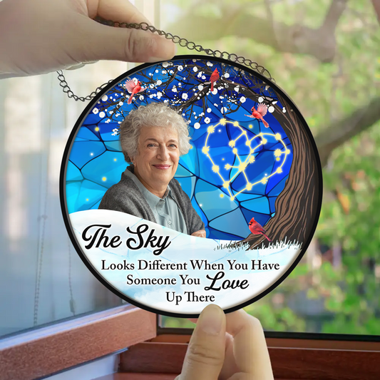 Custom Photo The Sky Looks Different Memorial Family - Personalized Stained Glass Window Hanging Suncatcher