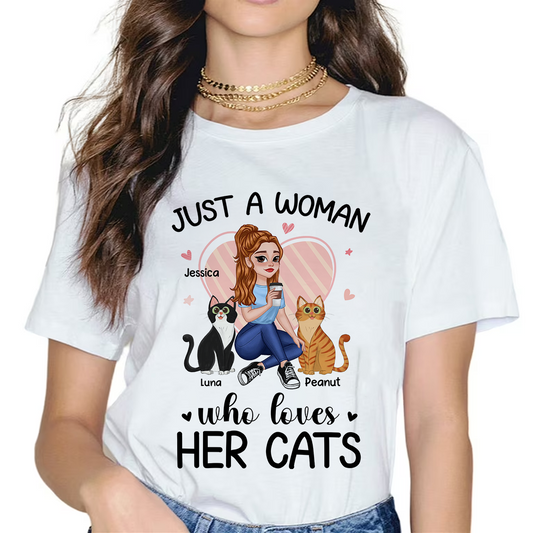 Just A Girl Who Loves Cats Pretty Cartoon Girl Sitting With Cats Personalized Shirt