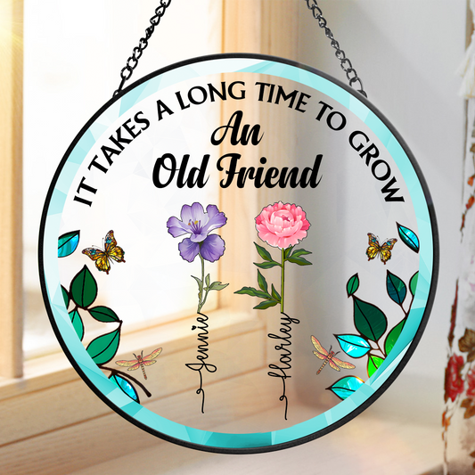 Birth Flower Grow An Old Friend - Personalized Window Hanging Suncatcher