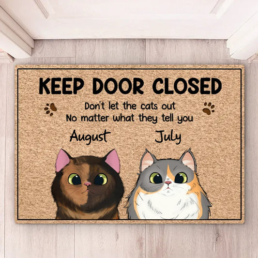 Cat Lovers - Keep Door Closed Don't Let The Cats Out No Matter What They Tell You - Personalized Doormat