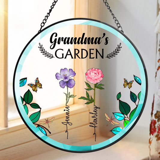 Birth Flower Grandma's Garden - Personalized Stained Glass Window Hanging Suncatcher