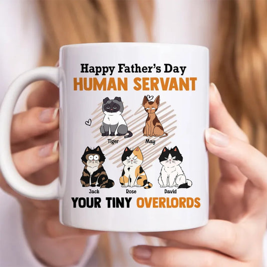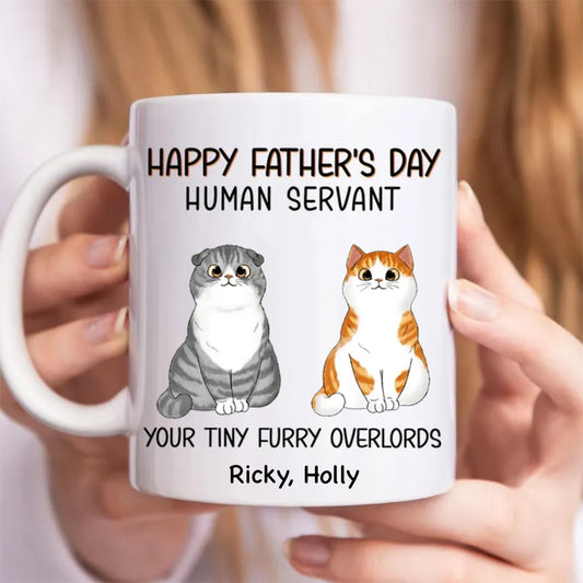 Cat Lovers - Happy Father's Day Human Servant Your Tiny Overlords - Personalized Mug