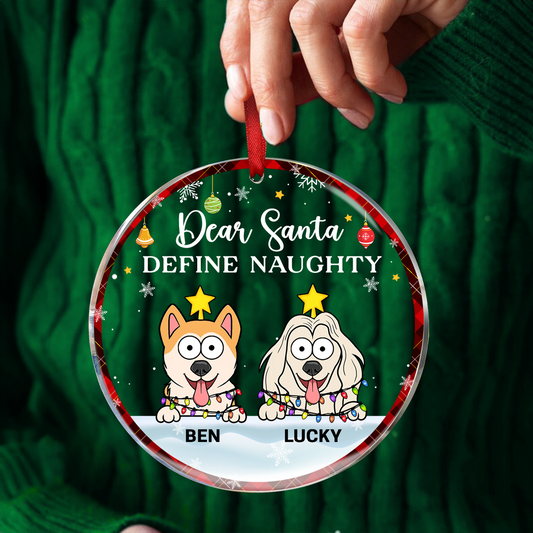 Dear Santa Define Naughty Christmas Dog Cat - Personalized Circle Glass Ornament