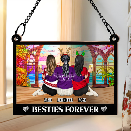 Besties Sisters Forever Landscape - Personalized Window Hanging Suncatcher Ornament