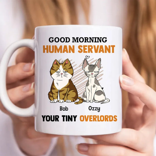 Cat Lovers - Good Morning Human Servant Your Tiny Overlords - Personalized Mug (TB)