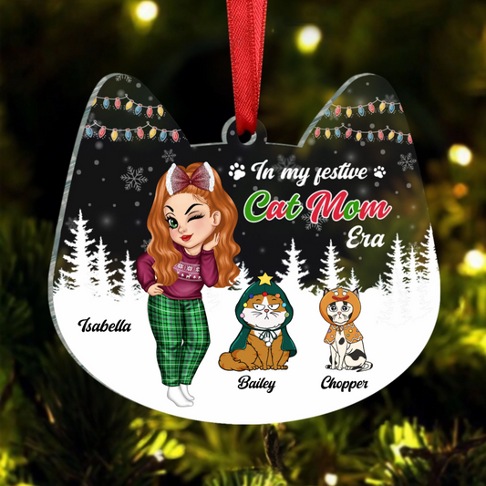 Christmas In My Festive Cat Mom Era - Personalized Custom Shaped Acrylic Ornament