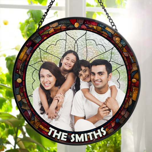 Custom Photo Family Dog Cat - Personalized Stained Glass Window Hanging Suncatcher