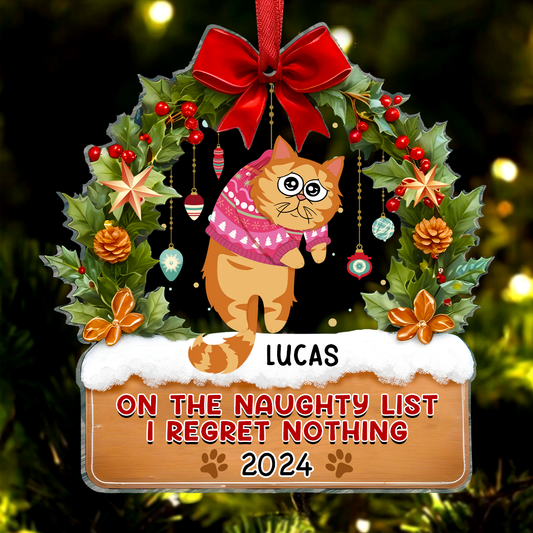 Hanging Cat On The Naughty List - Personalized Custom Shaped Acrylic Ornament