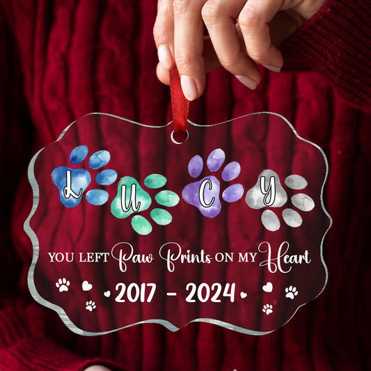 Memorial Dog Cat You Left Paw Prints On My Heart - Personalized Acrylic Ornament