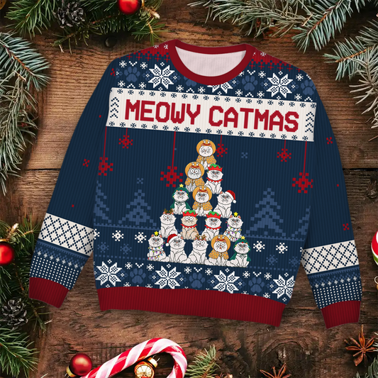 Meowy Catmas Christmas Tree Cartoon Style - Gift For Cat Lovers - Personalized Unisex Ugly Sweater