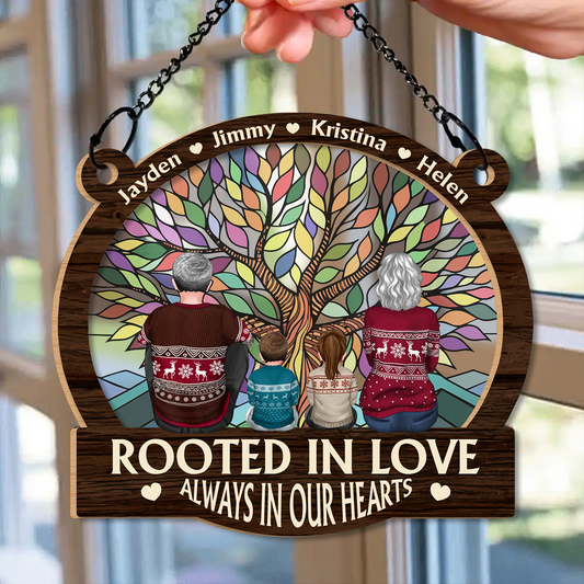 Memorial Family Tree Of Life Rooted In Love Always In Our Hearts - Personalized Window Hanging Suncatcher Ornament