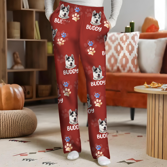 Custom Photo Lovely Pet Face Pattern Dog Cat Family - Personalized Pajama Pants