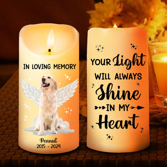 Custom Photo Dog Cat Pet Memorial Your Light Will Always Shine In My Heart - Personalized Flameless LED Candle