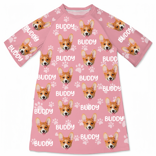 Custom Photo Funny Pet Face Pattern Dog Cat Family - Personalized Women's Sleep Tee