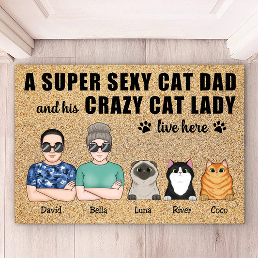 Cat Lovers - A Super Sexy Cat Dad And His Crazy Cat Lady Live Here - Personalized Doormat