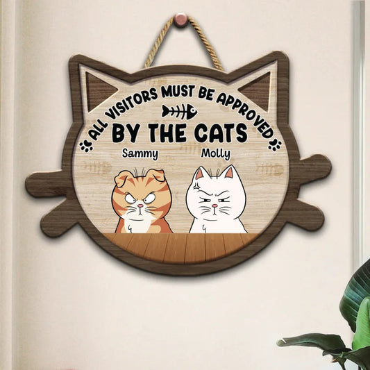 Cat Lovers - All Visitors Must Be Approved By The Cats - Personalized Shaped Wood Sign
