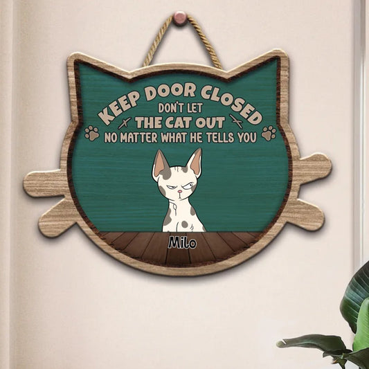 Cat Lovers - Keep Door Closed - Personalized Shaped Wood Sign (TB)