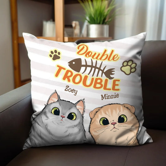 Cat Lovers - Trouble With My Cats - Personalized Pillow