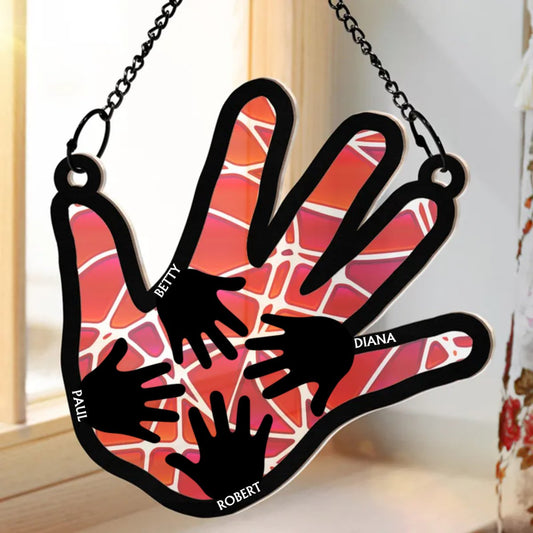 Family - Hand In Hand, This Papa Belongs To His Grandkids - Personalized Window Hanging Suncatcher Ornament