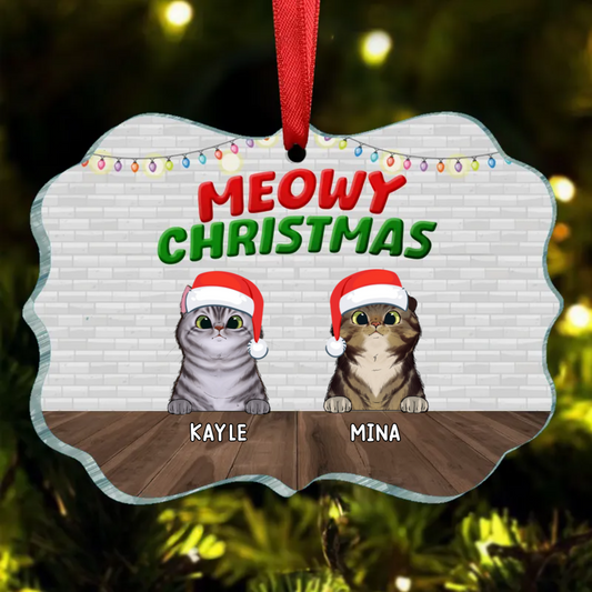 Christmas In House Peeking Fluffy Cats Personalized Christmas Ornament