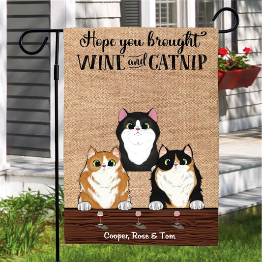 Cat Lovers - Hope You Brought Wine And Catnip - Personalized Flag