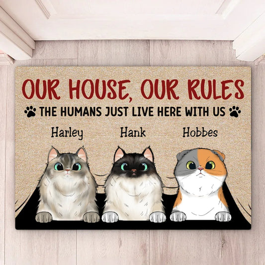 Cat Lovers - Our House Our Rules The Human Just Lives Here With Us - Personalized Doormat