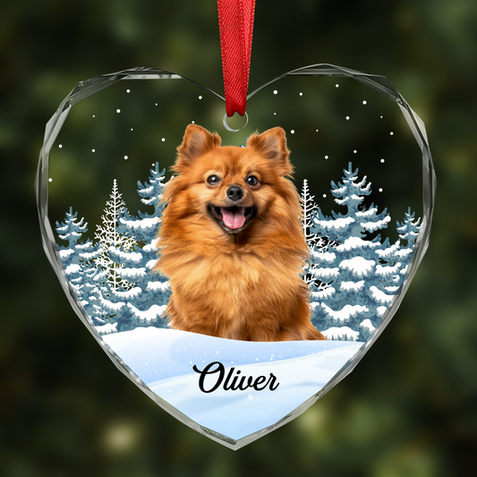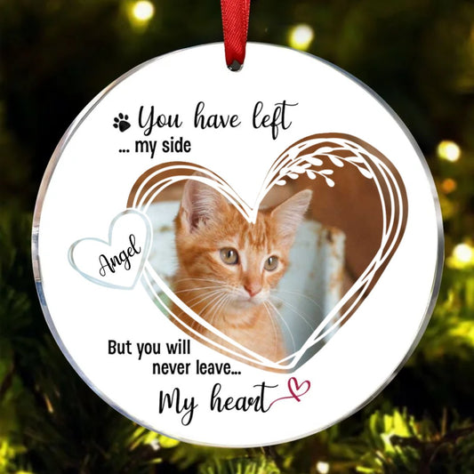 Custom Photo Pet Face Dog Cat Memorial - Personalized Heart Shaped Acrylic Ornament