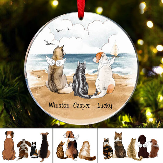 Pet Lovers - Dog Cat Beach - Personalized Acrylic Ornament