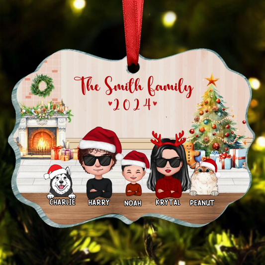 Doll Dad Mom Kids Dogs Cats Family In House Personalized Christmas Ornament