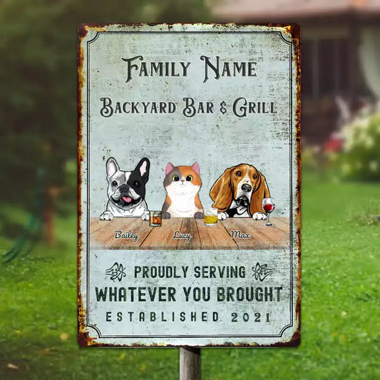 Personalized Custom Bar & Grill Dog/Cat Metal Sign
