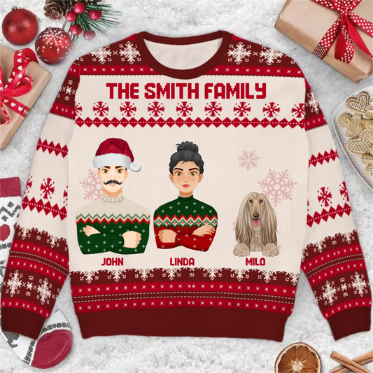 Flat Art Semi-real Pet - Christmas, Funny Gift For Family, Couple, Parents, Grandparents, Dog, Cat Lovers - Personalized Unisex Ugly Sweater