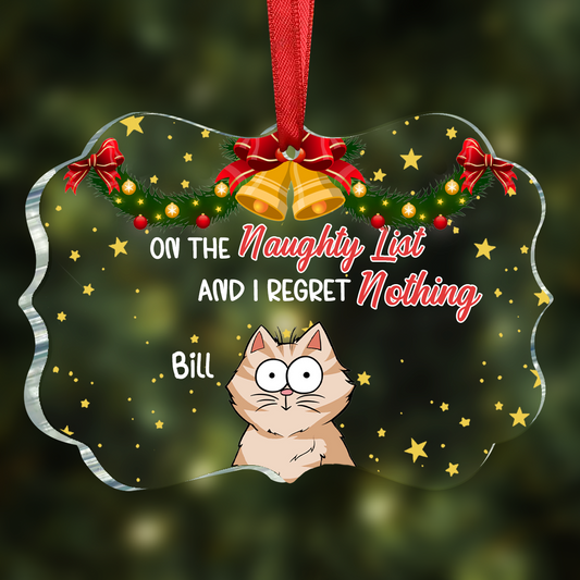 On The Naughty List And We Regret Nothing Funny Dog Cat - Personalized Medallion Acrylic Ornament