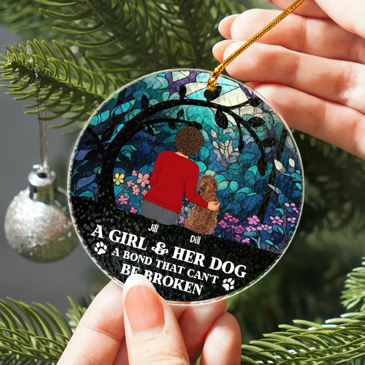 Flower Field A Girl And Her Dog And Cat - Personalized Circle Acrylic Ornament