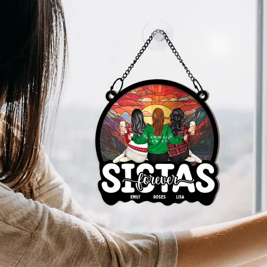 Bestie Sisters Forever - Personalized Window Hanging Suncatcher Ornament