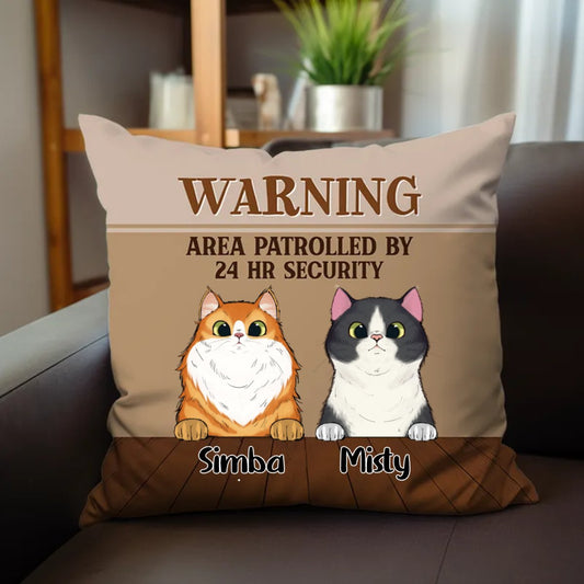 Cat Lover - Warning Area Patrolled 24 Hour Security - Personalized Pillow