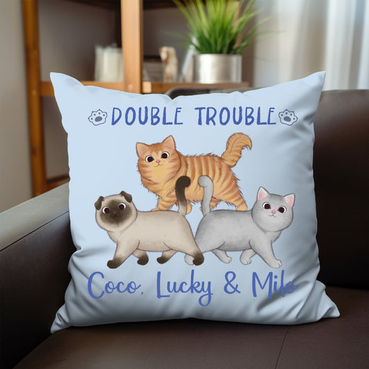 Cat Lovers - Double Trouble - Personalized Pillow (Ver 2)