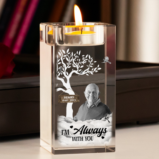 Custom Photo Memorial I'm Always With You - Personalized Crystal Candle Holder